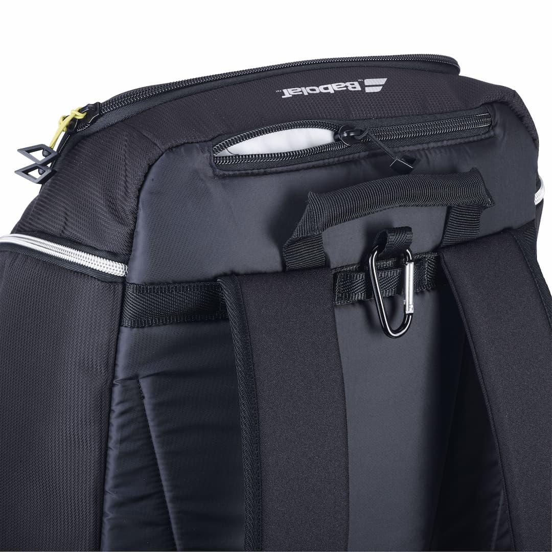 Its backpack-style carrying system delivers excellent comfort and balance, making it ideal for commuting by foot, bike, or scooter. Once courtside, the integrated carabiner hook allows the bag to hang securely on the fence, keeping everything accessible during matches and training sessions.