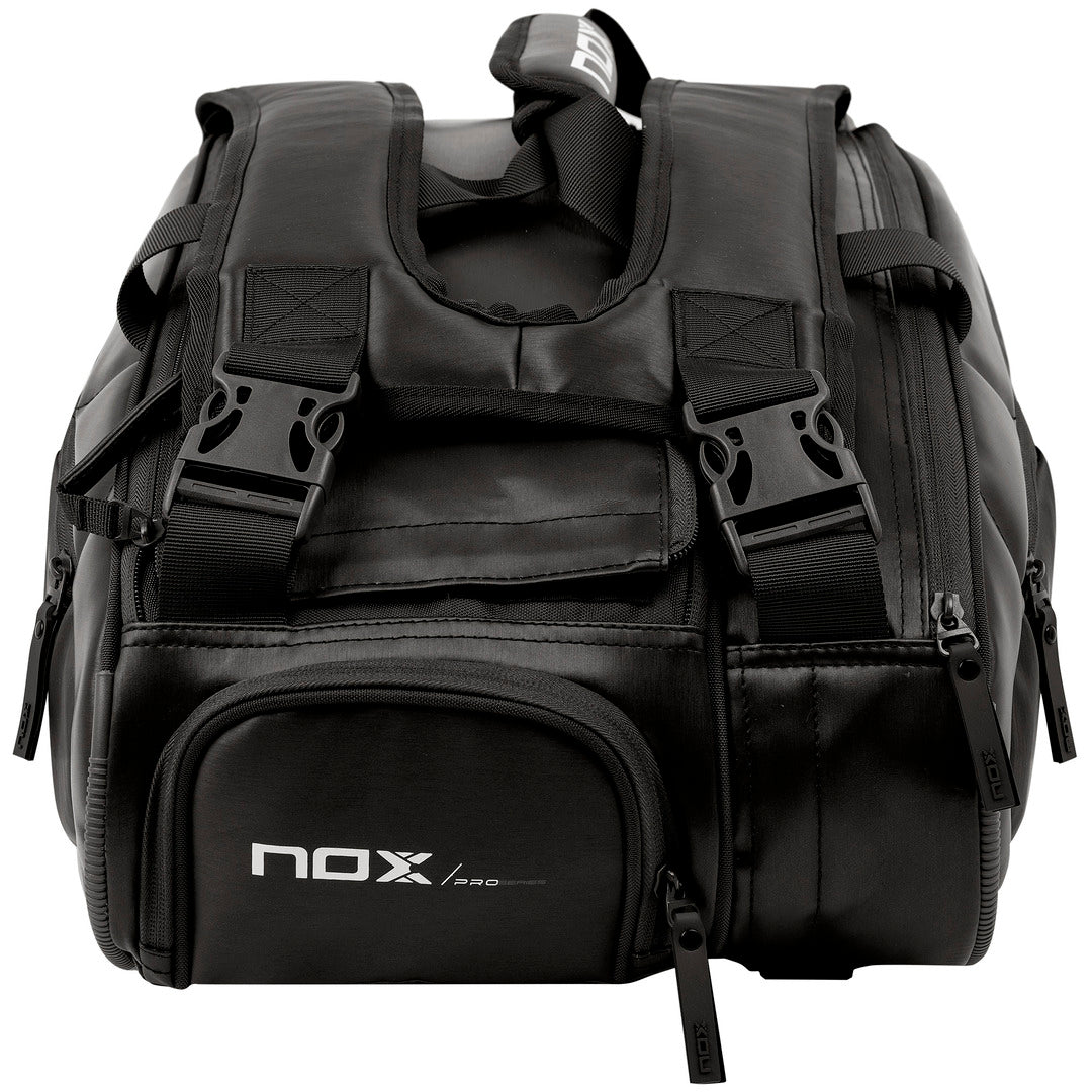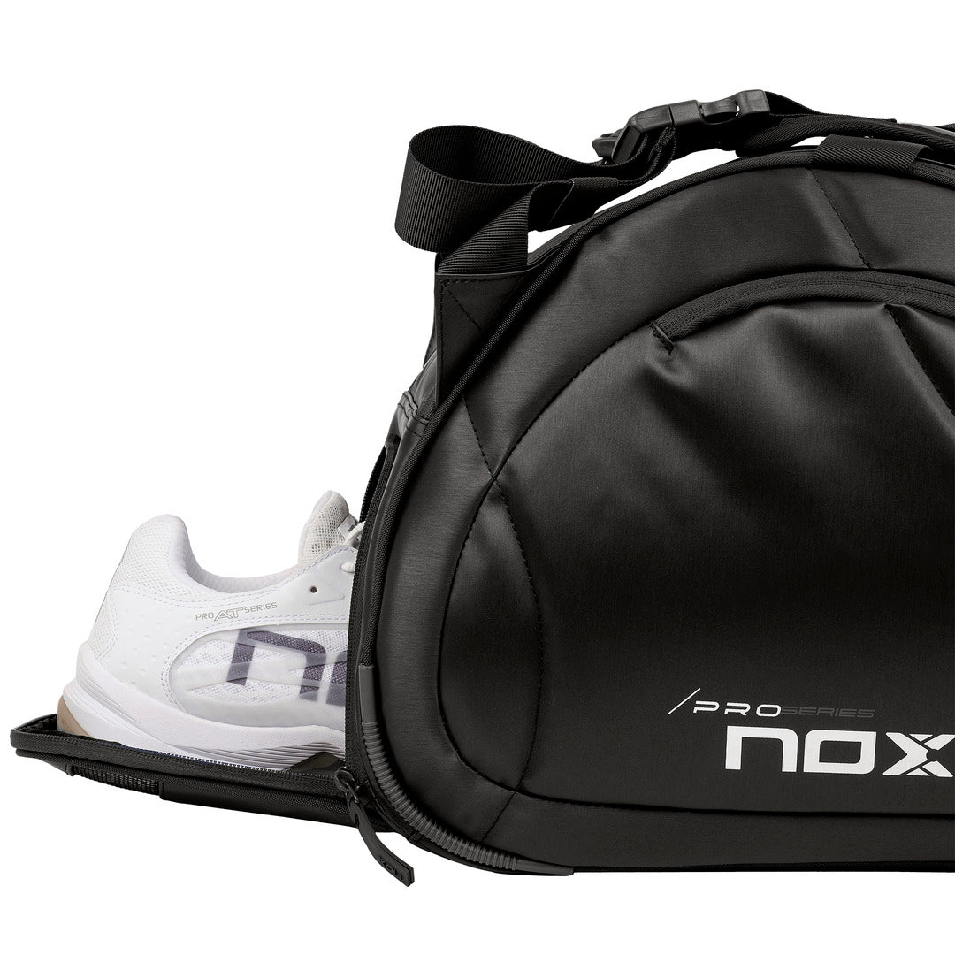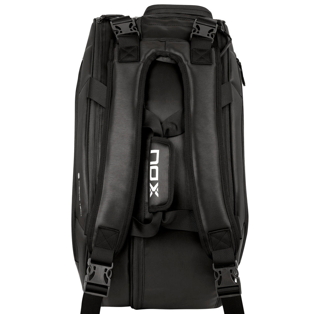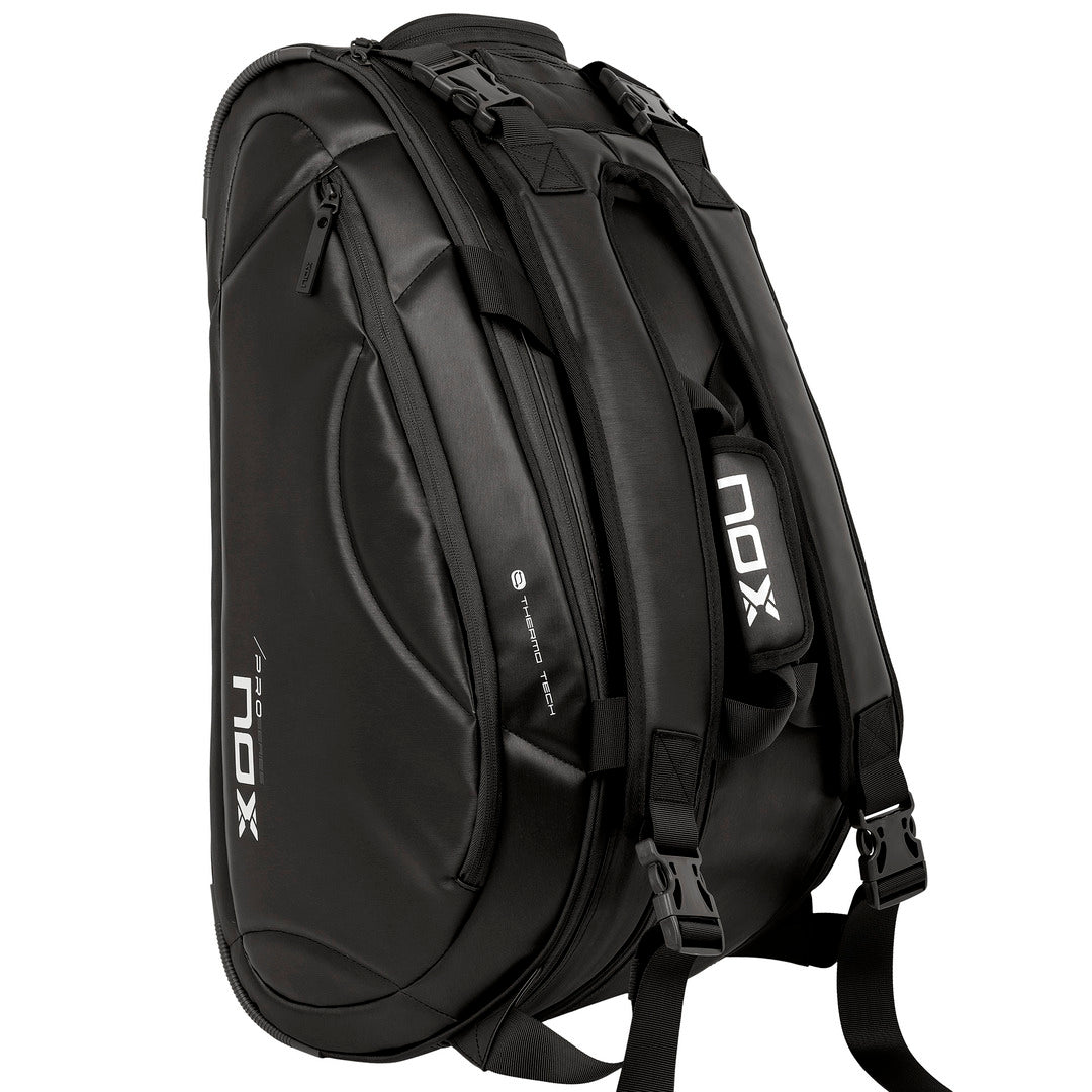 The Nox PRO Series Black Bag combines high-capacity storage, thermal protection, and ergonomic design—perfect for elite padel players.